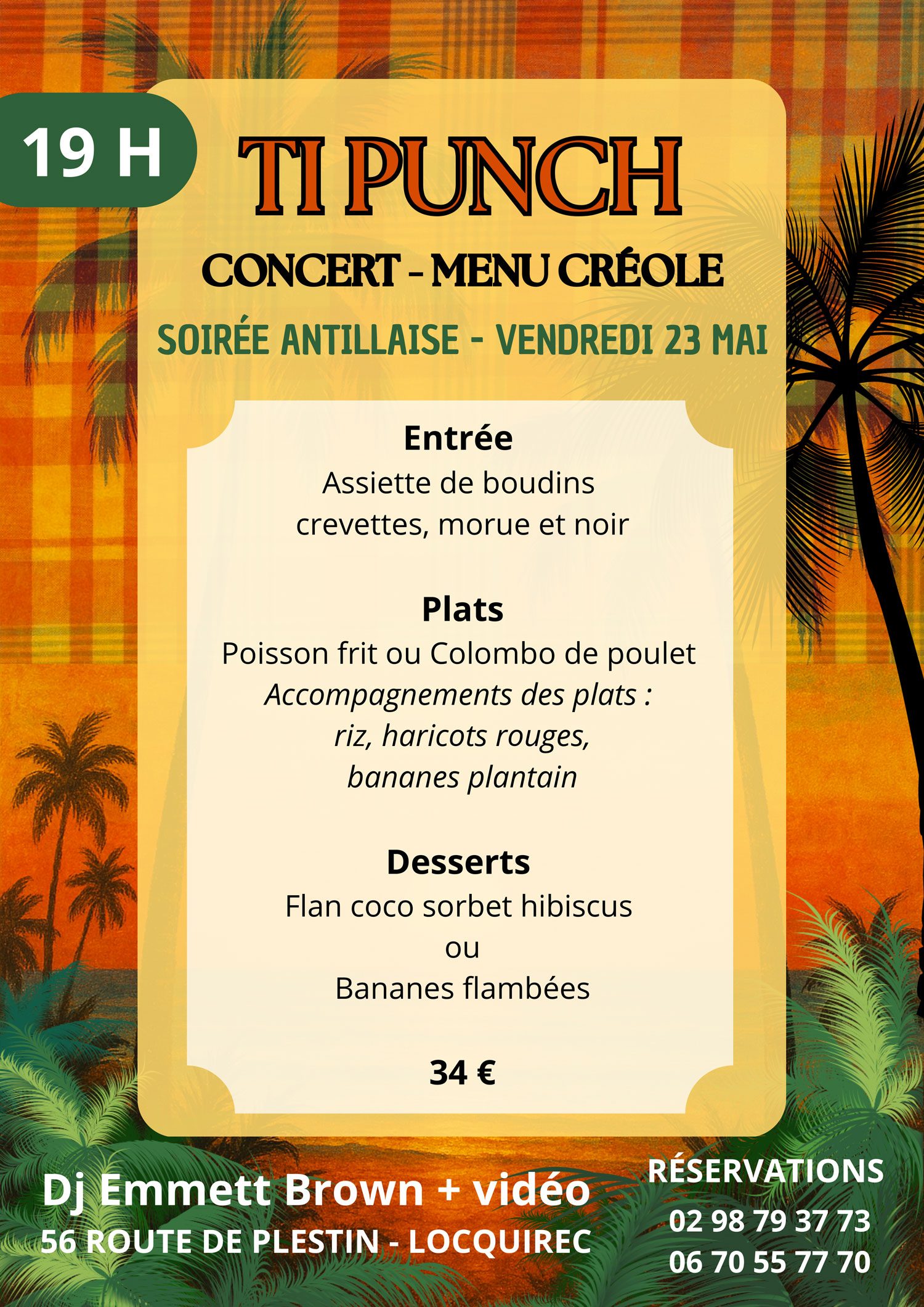 Rendez-vous au Ti Punch pour une soirée Dîner Antillaise, menu créole, avec DJ Set de Emmett Brown et vidéo.