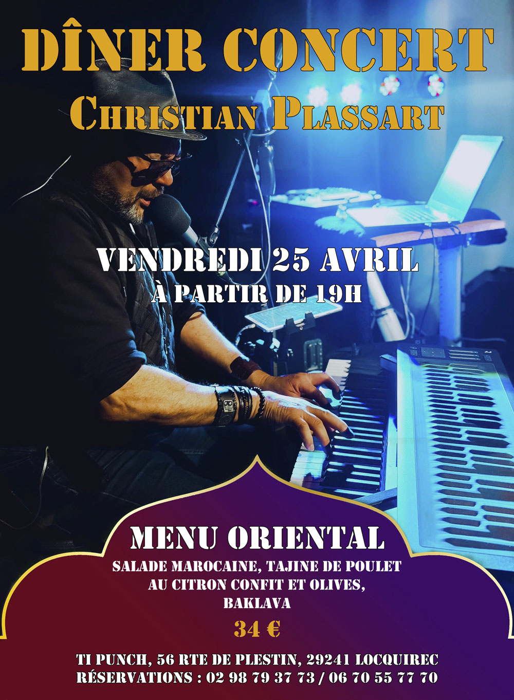 Rendez-vous au Ti Punchpour une soirée Dîner Oriental et Concert animé par Christian Plassart, dont la voix de crooner s’harmonise aux standards de musique pop, rock, blues ou encore country : Joe Cocker, Les Creedence, Sting, Johnny Cash, Dire Straits, Led Zeppelin …